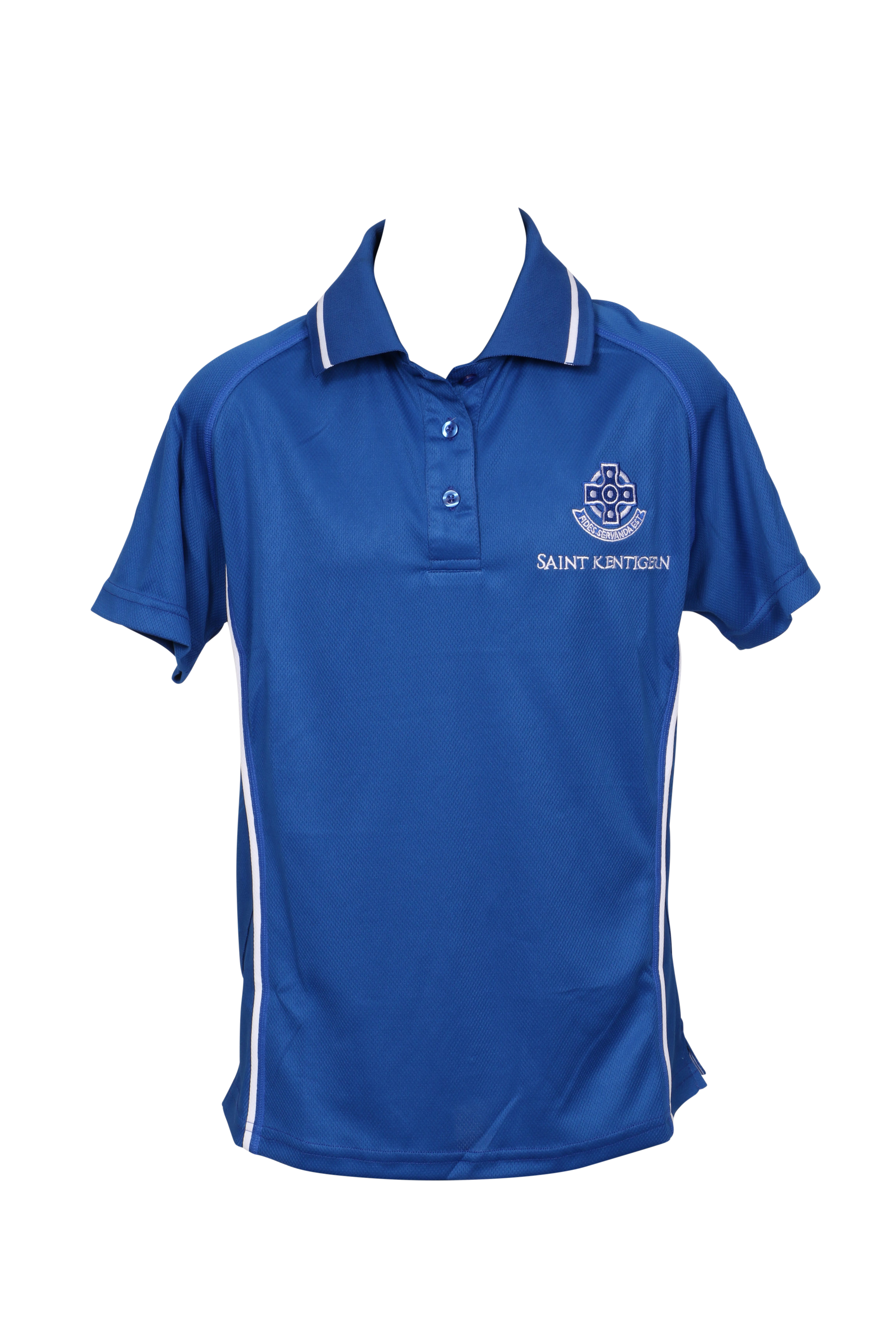 Royal blue/white dri-fit polo shirt, with Saint Kentigern embroidered on the left breast. Worn by travelling students and golf academy. (Girl's fit)